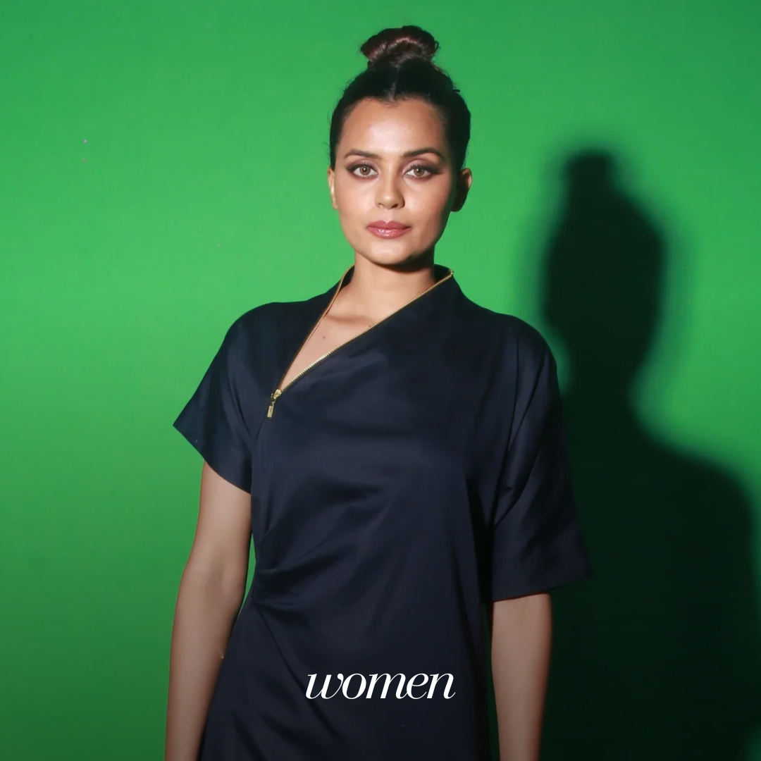 (Peach gold pleated) geometric cut top with matchingg parellel pants Co-ords sets