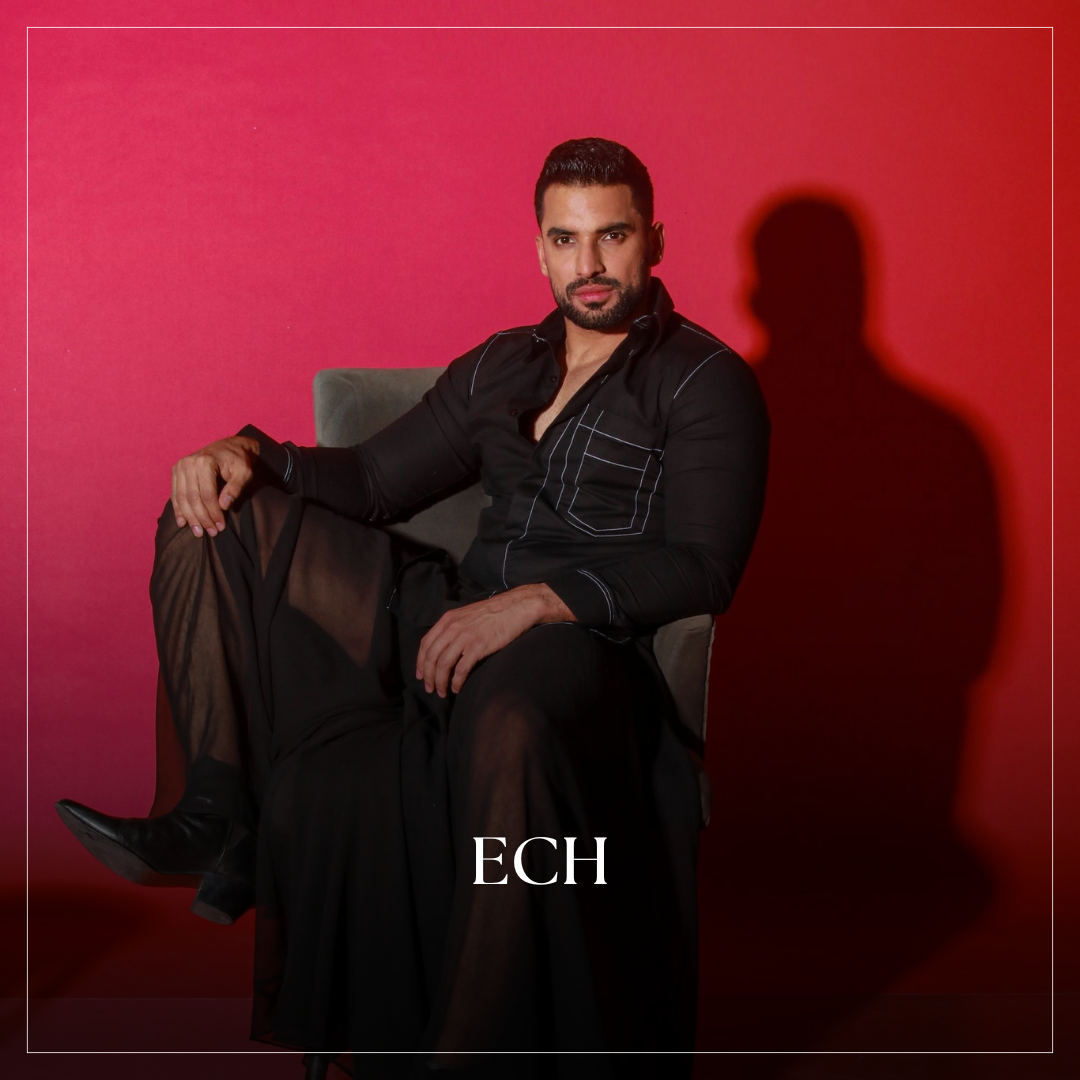 Beige linen co-ord set features with pearl & diamond work with matching straight pants.