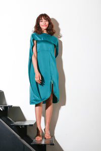 Teal milano dress with cape feature with front wide slit feature and zip - XXS