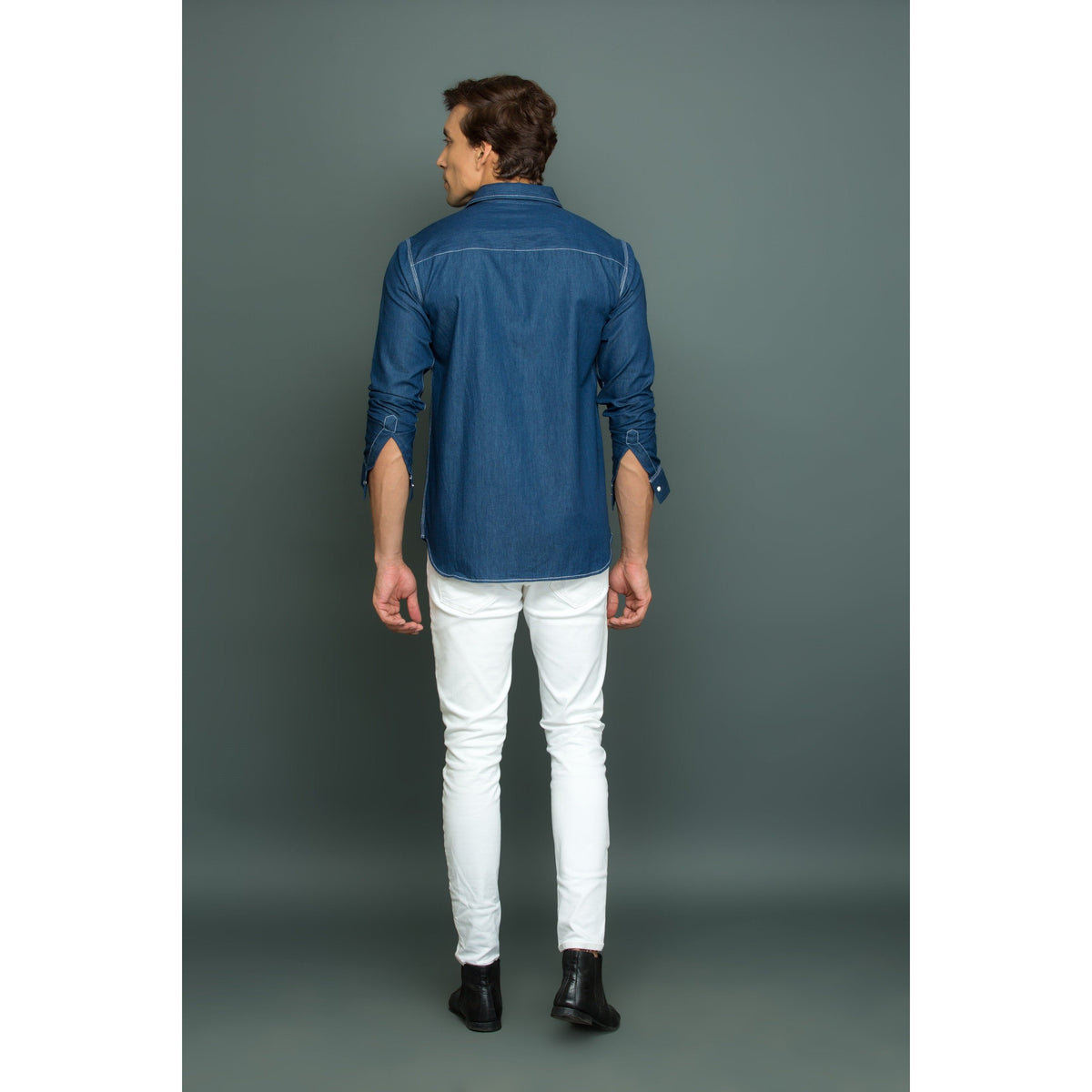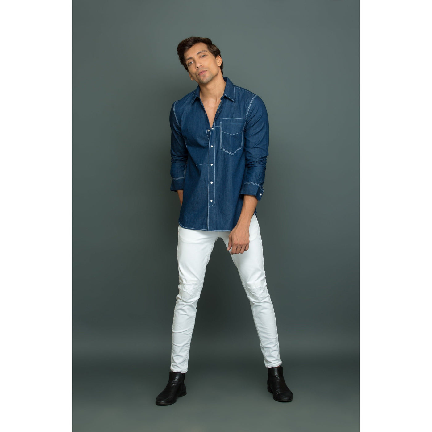 White press button pocket with white stitch detailing