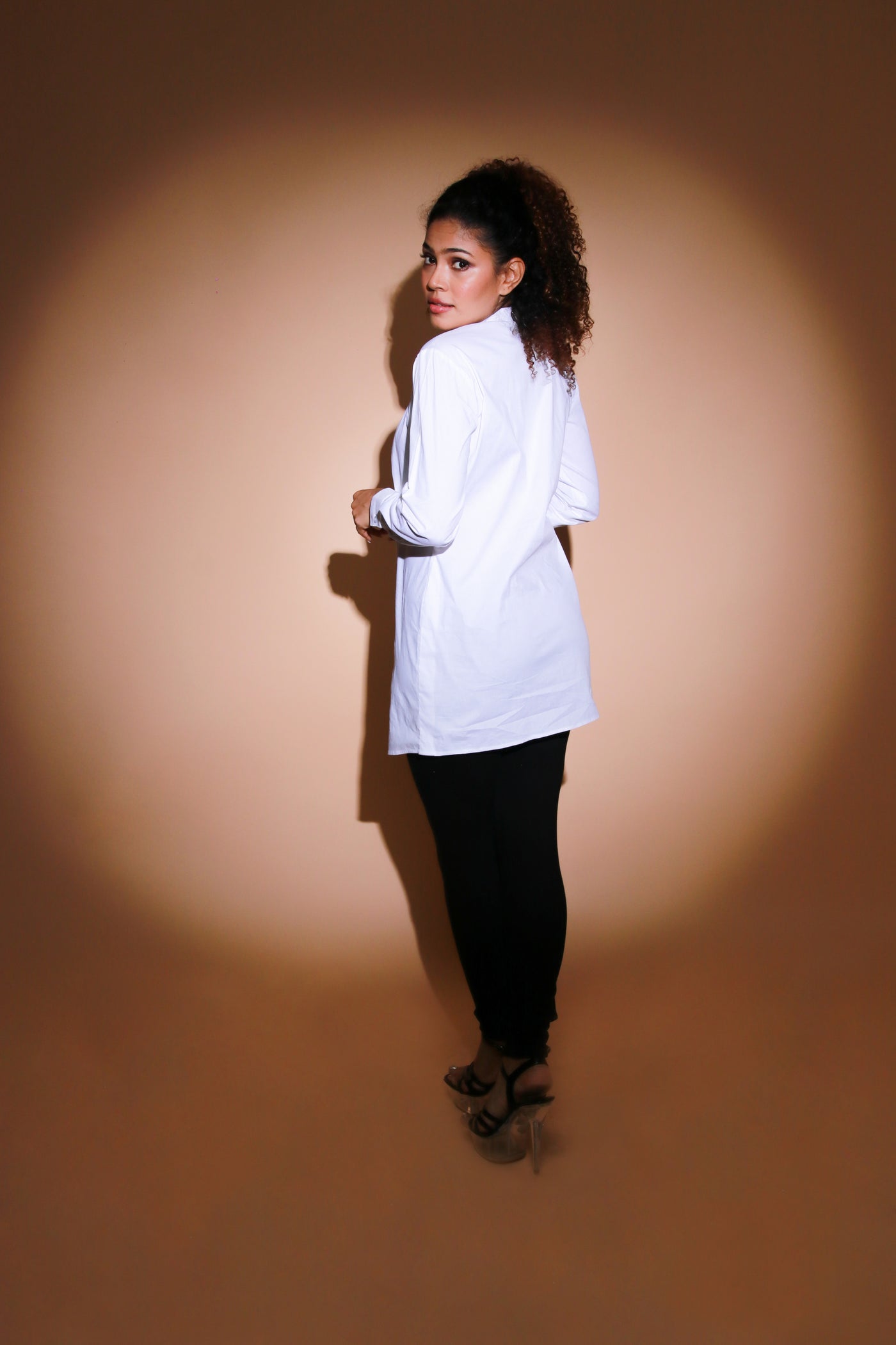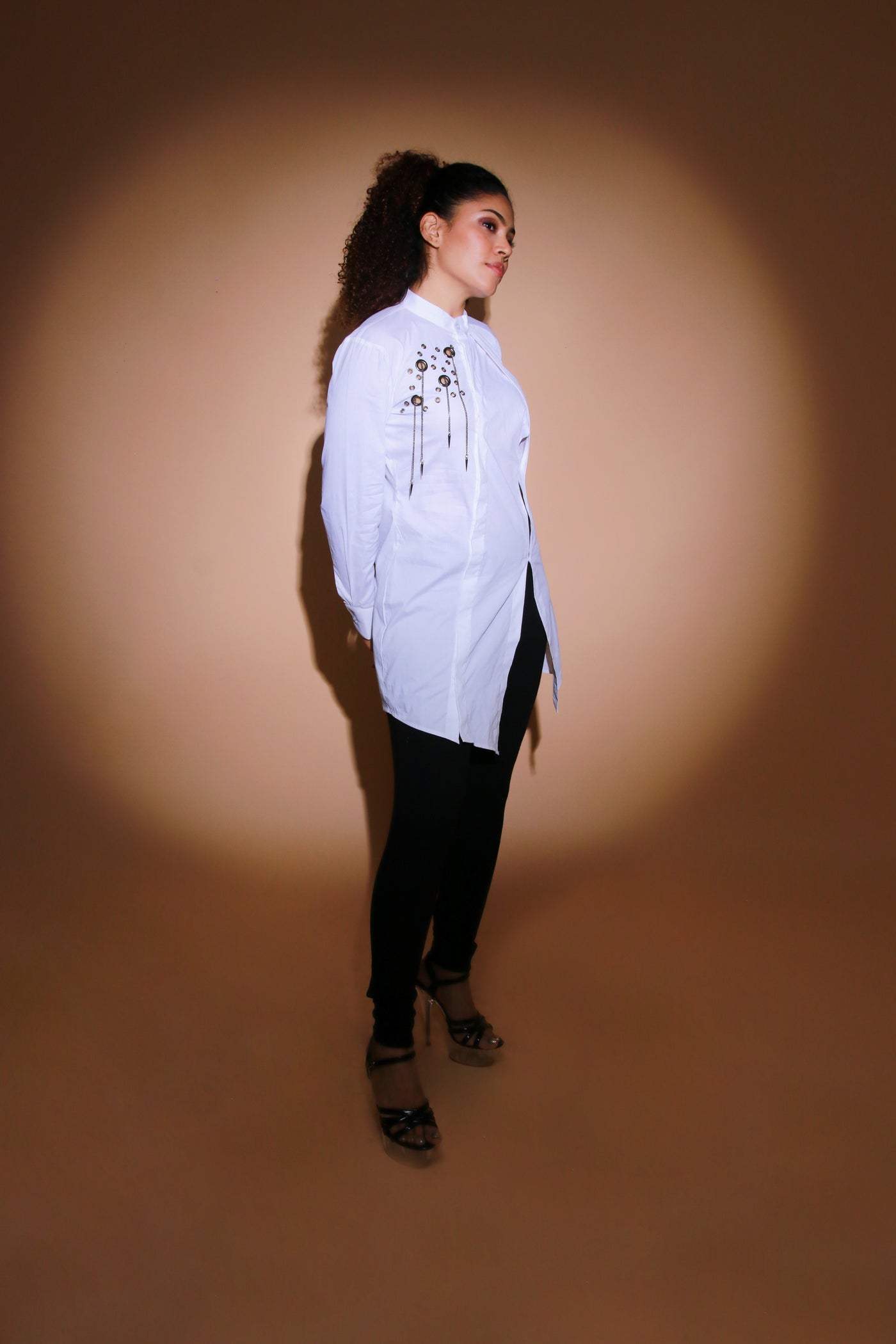 White top features an open side flap and eyelet and chains embellishment. - XXS